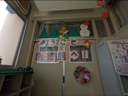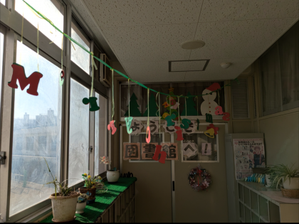 図書館も支援員さんの協力で、クリスマスバージョンになりました。皆さんぜひ利用してください!