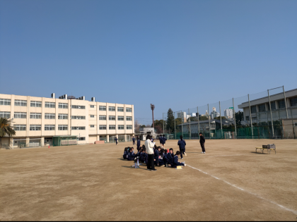 3時間目は1年生女子、保健体育科の研究授業です。1000メートル測定に向けて、自分の設定した目標ペースで走る練習です。