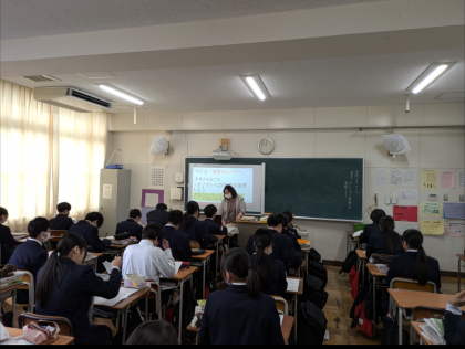4時間、1年生国語科の研究授業です。単元名は「食感のオノマトペ」めあては、オノマトペの効果を実感しようです。
