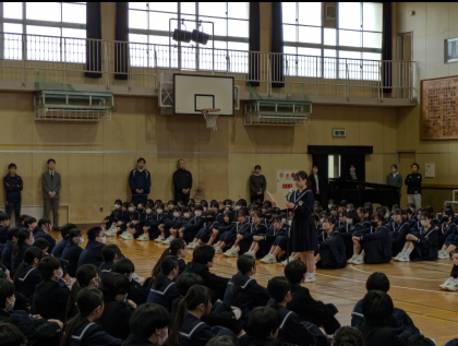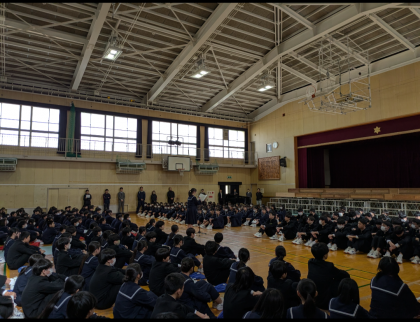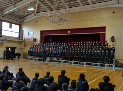 6時間目に全校生徒による3年生を送る会を行いました。在校生、卒業生代表のあいさつのあと、3年生が卒業の歌「エール」を披露しました。