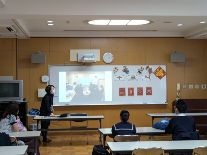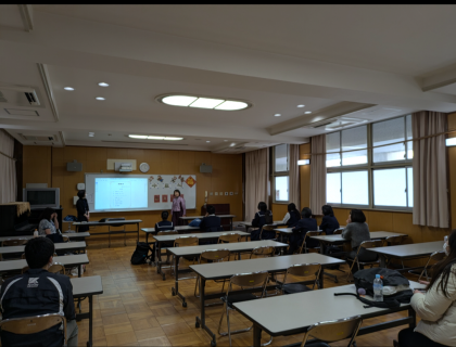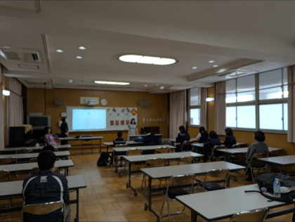 担当の先生のご挨拶や生徒から取り組みの思い出や次年度やってみたいことなどの発表、そして1年間の取り組みをスライドで見ました。