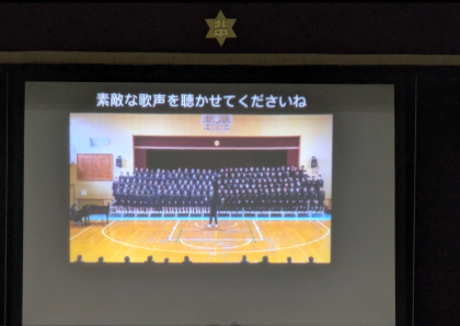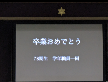 先生方の挨拶の後は、3年間振り返る思い出ビデオの鑑賞をしました。