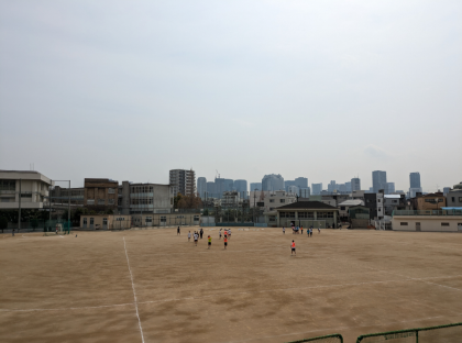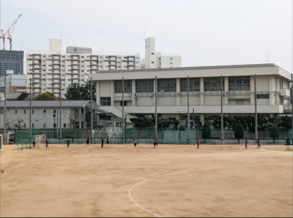 グランドではハンドボール部と陸上部が元気に活動しています。
