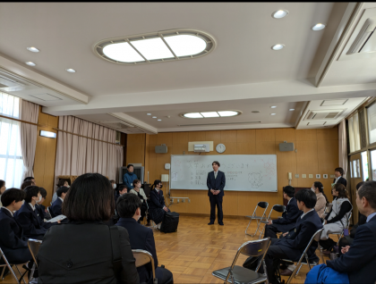 全体終了後、特別支援学級の生徒と保護者の皆様へ担当教諭の紹介と生徒の皆さんの自己紹介を行いました。最後に記念写真を撮りました。