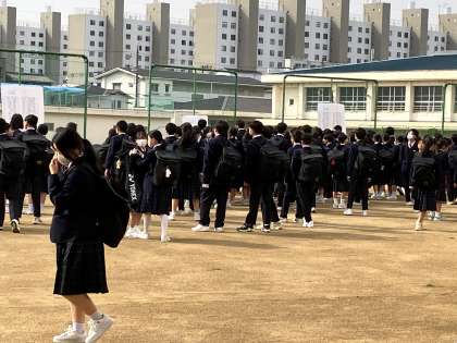 ワクワク、ハラハラ、ドキドキしながら新しいクラスの発表を確認しています。