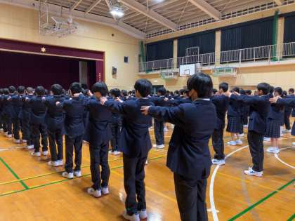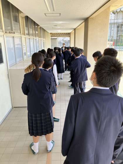 1年生は校舎見学をしたり、教室で中学校生活でのルールの説明を聞いたり、クラスの決め事をしたり、体育館で初期指導を行いました。