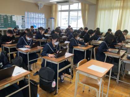 本日は、3年生で全国学力・学習状況調査のオンライン方式調査(生徒質問調査・理科)が行われました。