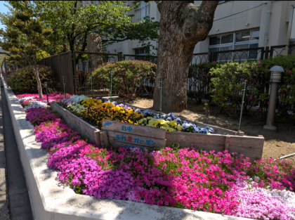 色とりどりの花が生徒の皆さんの心を癒してくれています。