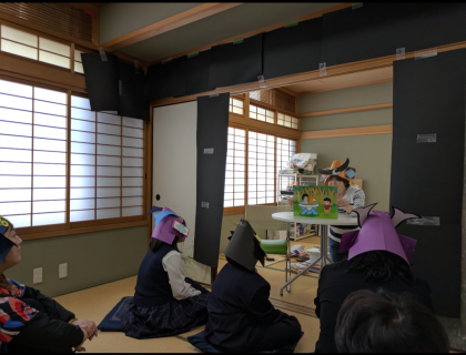 2時間目、特別支援学級生徒対象に図書館補助員さんと学校元気アップコーディネーターさんのご協力で本の読み聞かせをしていただきました。はじめにカブトをみんなで作り、その後で「こどものひのさがしもの」を読んでくださいました。とても楽しい時間でした。