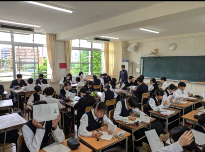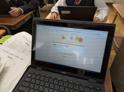 6時間目、2年生は、自分で調べ、作成した職業リーフレットの評価会です。友だちが調べた職業リーフレットを交換しながら読んでいます。
