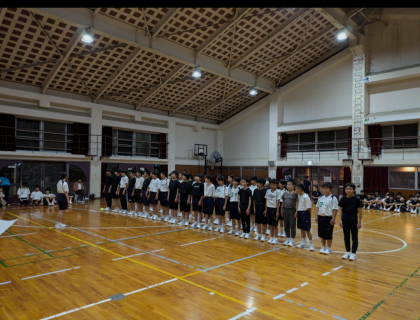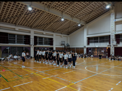 始めの種目は集団行動の対戦です。体育の授業で学習したことをクラス全員で心を合わせて行います。