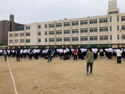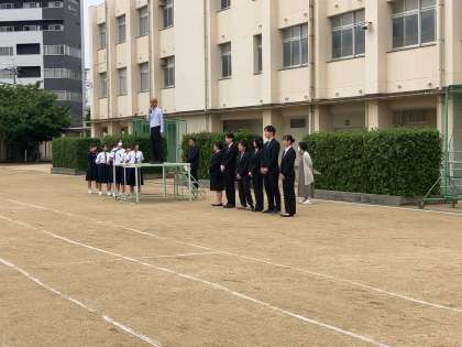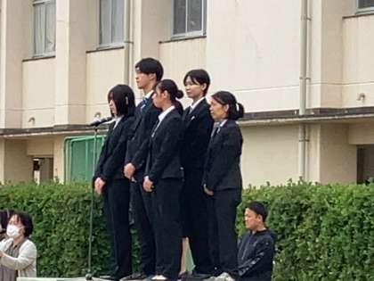 今日から3週間、教育実習が始まります。6名の実習生が全校集会であいさつしました。