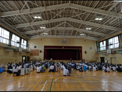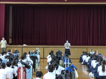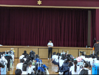 3年生は明日からの修学旅行に向けて、荷物の確認と結団式を行いました。明日の集合は早いですから今日は早く休むようにしましょう。