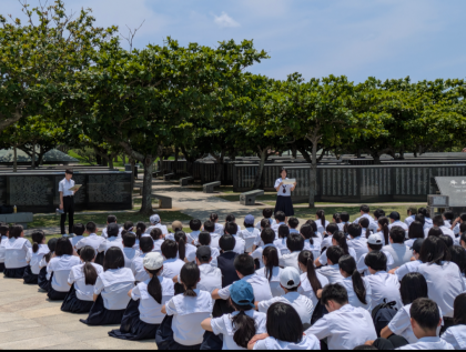 平和の礎で79期生、戦没者に黙とうを捧げ平和の誓いを行いました。