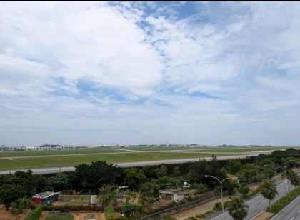今日は日曜日ですので、飛行機の発着はほとんどありませんので、騒音はないです。
