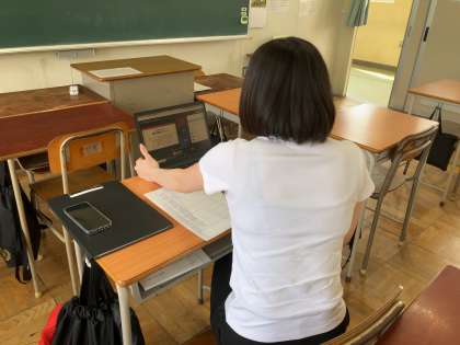 本日は、1限目の時間帯に家で端末接続テストをしてからの登校です。