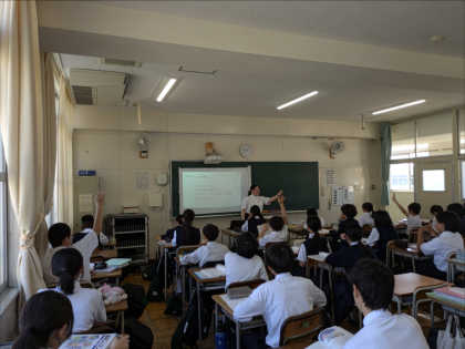 1時間目、教育実習生による1年生、国語の研究授業です。