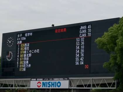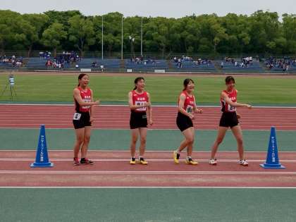 大阪市春季総体で、陸上競技部の女子低学年リレーが4位入賞しました。そのメンバーは、1走Mさん(2年)2走Sさん(1年)3走Iさん(1年)4走Sさん(2年)です。