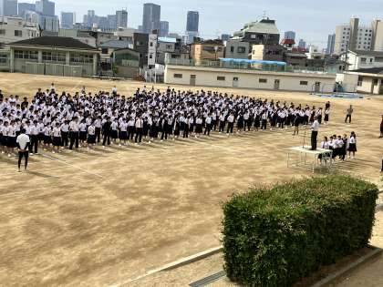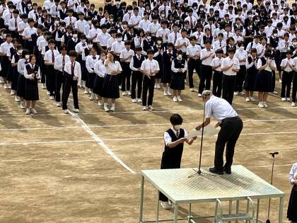 また、昨日行われた大阪市春季総体で3位(銅)になった女子ソフトボール部と男子バトミントン部の表彰がありました。
