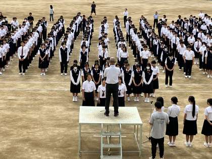 校長先生から、今週の水曜日は3年生の第1回実力テスト、また期末テスト1週間前になるお話しと、今日にも梅雨入りになる予報が出てますので、体調管理も気をつけてくださいと講話がありました。