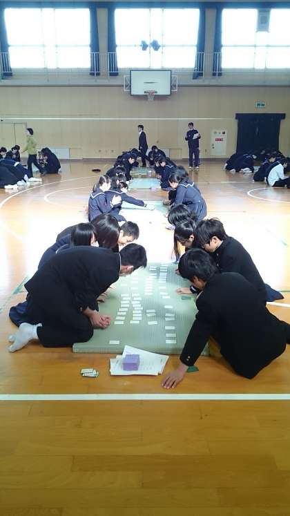 2月5日(金)の5,6時限目に、体育館で2年生百人一首大会が行われました。しっかりと歌を覚えるだけでなく、どこにその札があるのかを見極めている人が結構いました。見ていて、「さすが、2年生」と、感心しました。
