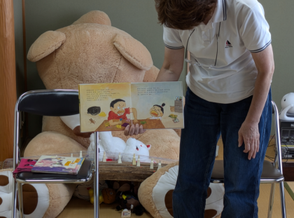 2時間目、特別支援学級生徒に図書館支援員さんと学校元気アップボランティアのみなさんで七夕にまつわる本の読み聞かせをしていただきました。