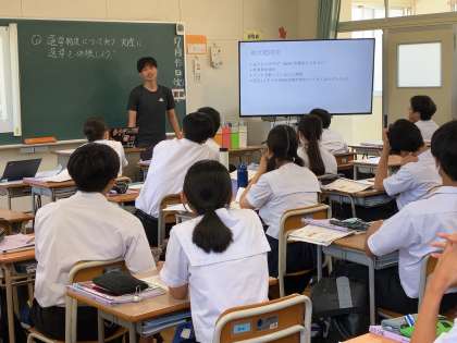 分野は、公民の選挙制度について。始めに公職選挙法についての説明をした後、今月行われる参議院選挙についての説明やクイズをしていました。その後、選挙制度の説明や実際に選挙(投票)をやってみたりと、盛りだくさんの内容でした。