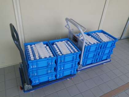 今回は、台車が変更になっていたので、急きょ、ワゴンごと1,2年生分をそれぞれの階まで持ち運びました。