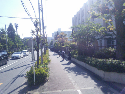 朝の登校風景です。本校の生徒だけではなく、通勤する人、通学する人がたくさん行き交っています。自転車に気を付けながら、登校しています。