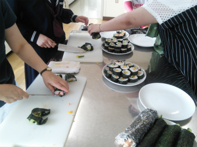 この日は、『キンパプ』を調理し、みんなで食べました。