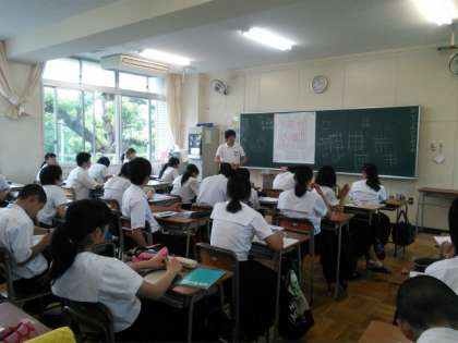 3年3組の社会の授業です。2人ペアで問題を出し合っています。