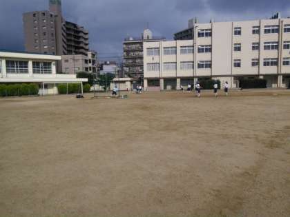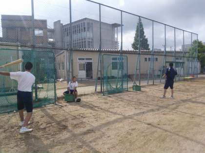 グラウンドでは、ソフトボール部と野球部が練習をしています。