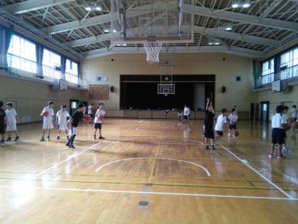 体育館では、男子バスケットボール部がシューティングを行っています。一生懸命汗を流す姿はかっこいいですね。