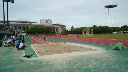 陸上部は、長居競技場で、大会が行われています。写真は、女子100mの決勝の様子です。