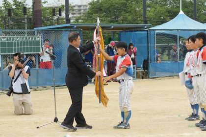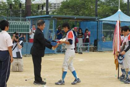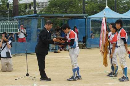 ソフトボール部の表彰式です。再び、優勝旗を持ち帰りました。