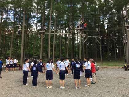 6月14日 3年生修学旅行 2日目 EXアドベンチャー体験 ローエレメントの様子です。何かを考えながら行動しています。謎がとけるかな?