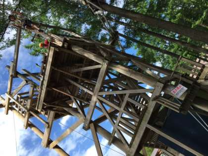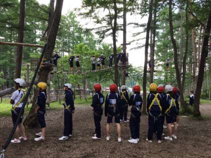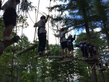 6月14日 3年生修学旅行 2日目 EXアドベンチャー体験 ハイエレメント女子の様子です。みんな緊張しながら、しっかりがんばっています。