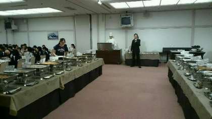 シェフによるステーキを実演で焼いていました。多くの生徒が何枚も食べていました。