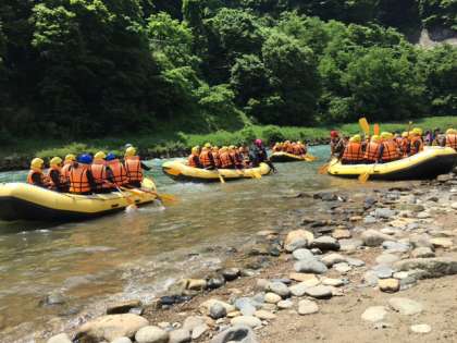 6月15日 3年生修学旅行 3日目  犀川でのラフティングのようすです。