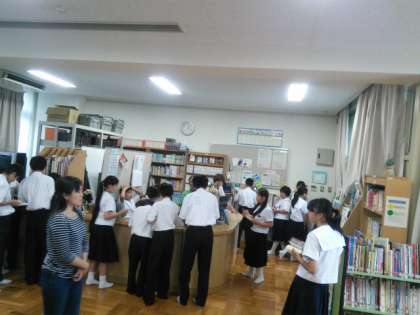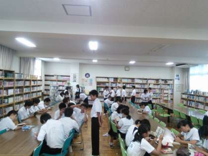 昼休みの図書館のようすです。今日は、雨が降り、図書館はにぎわっています。106名が来館しました。昨日、修学旅行から帰ってきた3年生も、「久しぶりに本のにおいを嗅ぎました」と、なつかしさをもってお話ししてくれました。