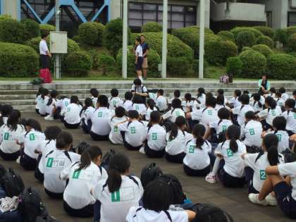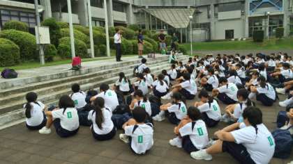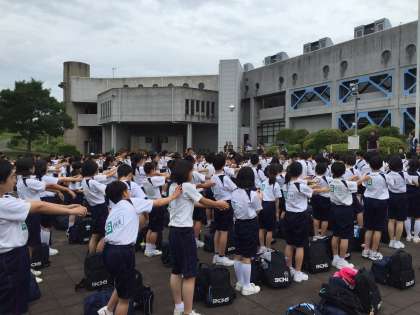 1年生は、11時5分に宿泊先の希望ヶ丘文化公園に到着しました。まだ雨は降っていないようです。学校に残っている教職員一同、安心しました。