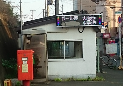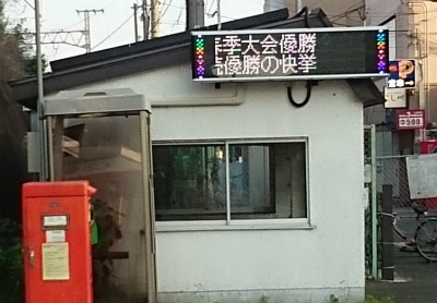 塚本駅前の電光掲示板に、本校運動部の結果が掲示されています。