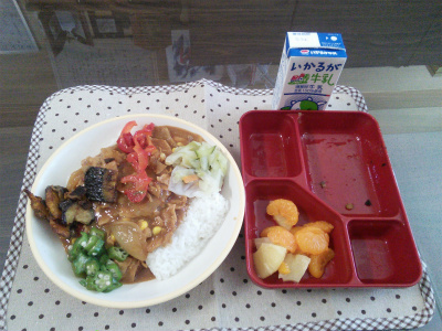 パプリカの赤色、オクラときゅうりの緑色、なすびの濃紺、カボチャの黄色等、色とりどりでおいしかったです。