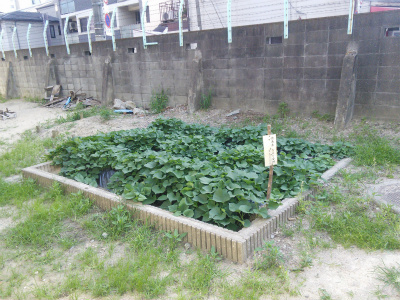体育館横の畑では、男子バスケットボール部が育てているサツマイモが順調に育っています。特に、最近の強い日差しでより一層成長したように感じます。