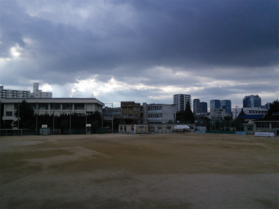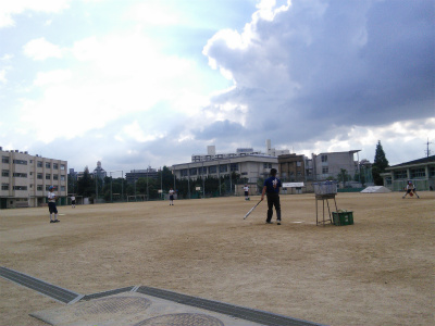 もうすぐ、運動部の夏の大会(大阪府の大会)が始まります。グラウンドでは、ソフトボール部が顧問の先生のノックを受けています。