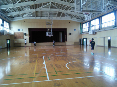 また、体育館では、男子バスケットボール部がシューティングの練習を行っています。