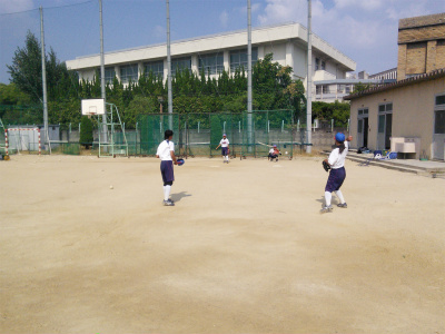 ソフトボール部は、大阪府選手権大会で見事準優勝し、大阪代表として、近畿大会に出場します。明日、和歌山県紀の川市の粉河運動場で、京都府の強豪、西京極中学校と試合を行います。今日は、試合直前練習を行っています。