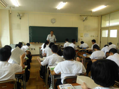昨日、12日の5時限目に2年生の授業を他の教職員が参観し、その後研究討議を行いました。