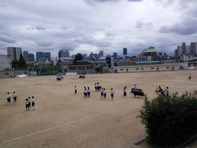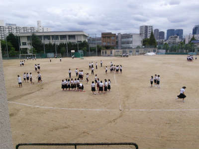 昼休みには、通常、ボール遊びをしている生徒が多いのですが、この時期は、体育大会に関わる練習をする人が増えます。特に、『ザ・チームワーク』の練習をしている人が多かったようです。
