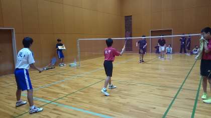 男子バドミントン部も、東成スポーツセンターで大会が行われています。現在、淀中学校と試合を行っています。